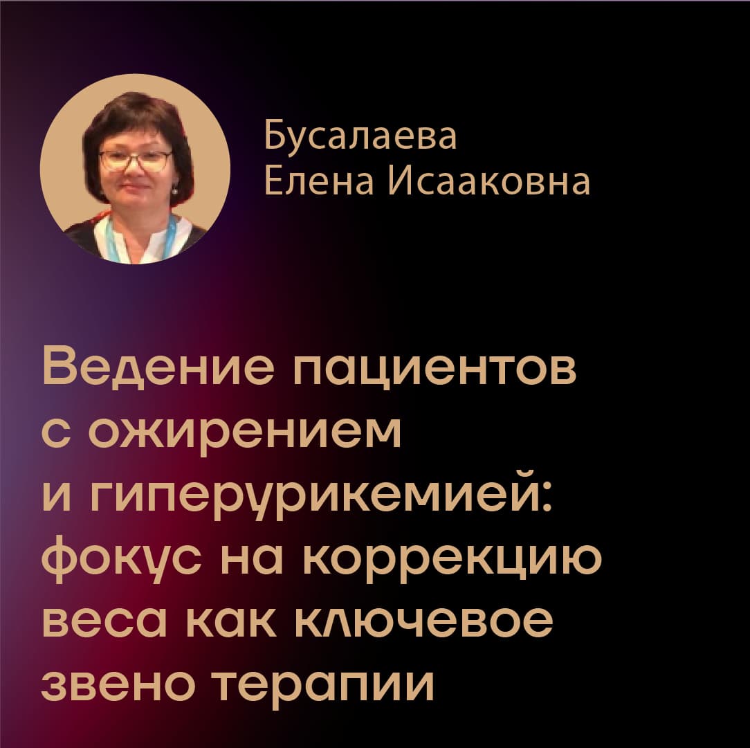 Доклад посвящён особенностям ведения пациентов с ожирением и гиперурикемией с акцентом на снижение массы тела как ключевой фактор патогенетической терапии. Будут рассмотрены механизмы взаимосвязи ожирения, инсулинорезистентности и нарушений пуринового обмена, влияние снижения веса на уровень мочевой кислоты и частоту подагрических приступов. Представлены современные подходы к немедикаментозной коррекции, принципы рационального питания и возможности медикаментозной поддержки с учётом коморбидности.